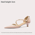 Solution: These Rivet High-Heel Sandals combine stable heel height, a soft sheepskin insole, and anti-slip soles — delivering both comfort and confident elegance wherever you go.